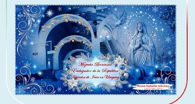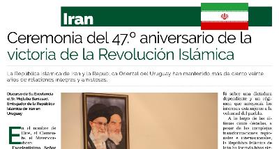 مراسم بزرگداشت چهلمین سالگرد پیروزی شکوهمند انقلاب اسلامیبا استقبال گسترده شخصیت های بلندپایه سیاسی، اقتصادی، اجتماعی، فرهنگی و نظامی اروگوئه از جمله فرمانده کل نیروی زمینی ارتش و وزرای بهداشت و کشاورزی کشور یاد شده در روز دوشنبه مورخ 22 بهمن 1397 در سفارت جمهوری اسلامی ایران در مونته ویدئو برگزار شد.