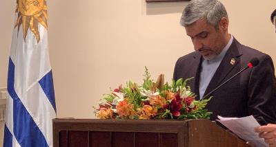 طی مراسم یاد شده، جناب آقای ابوالفضل پسندیده سفیر محترم جمهوری اسلامی ایران در اروگوئه با اشاره به موضوعاتی چون قدمت 117 ساله روابط دو کشور، روند رو به رشد روابط تهران-مونته ویدئو و صلح طلب بودن مردم دو کشور، تصریح نمودند که "امروز برجام به عنوان یکی از مهمترین دستاوردهای جانبه گرایی در تاریخ روابط بین الملل، تحت تأثیر رفتارهای یکجانبه، غیر قانونی و مغایر با حقوق بین الملل دولت حاکم بر ایالات متحده قرار گرفته است. از این رو جمهوری اسلامی ایران دست همه کنشگران منطقی نظام بین الملل از جمله اروگوئه را برای محافظت از معاهدات و ترتیبات بین المللی را به گرمی می فشارد."